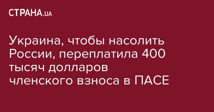Новость исправлена. Украина добровольно переплатила 400 тысяч долларов в качестве ежемесячного членского взноса ПАСЕ.