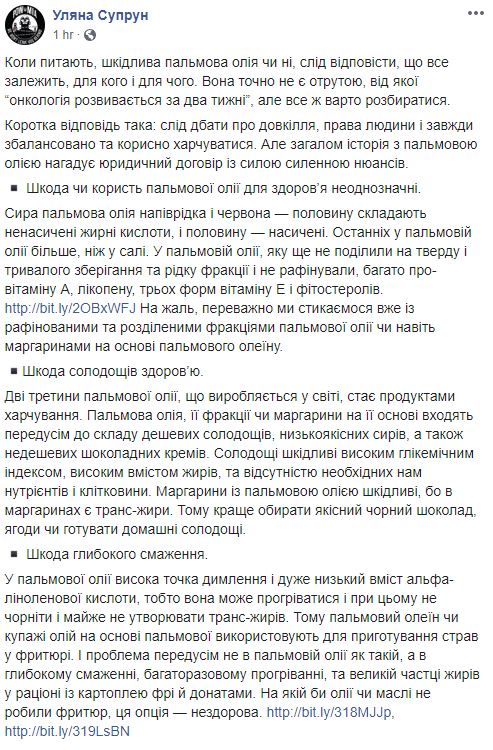 Супрун заявила, что пальмовое масло, которым пичкают украинцев, не так уж и вредно