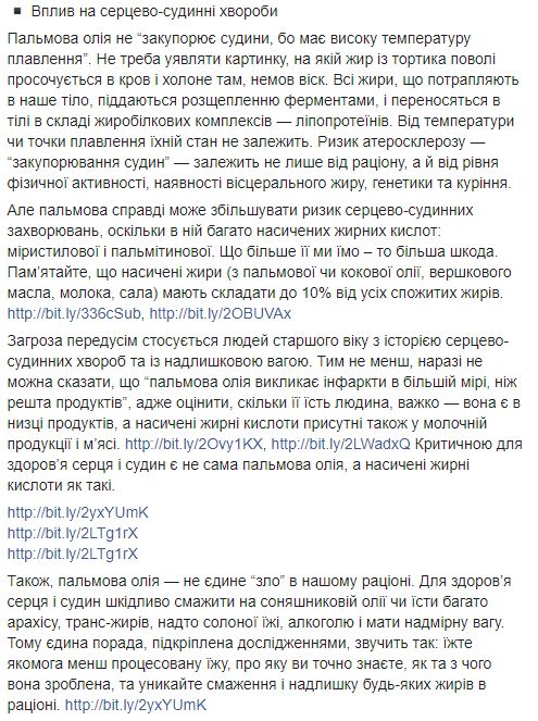 Кроме того, по словам Супрун, пальмовое масло действительно может увеличивать риск сердечно-сосудистых заболеваний, поскольку в ней много насыщенных жирных кислот: миристиловой и пальмитиновой. "Чем больше ее мы едим - тем больший вред. Помните, что насыщенные жиры должны составлять до 10% от всех потребляемых жиров", - отмечает она.