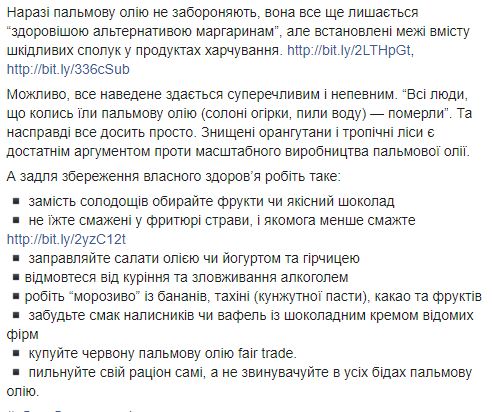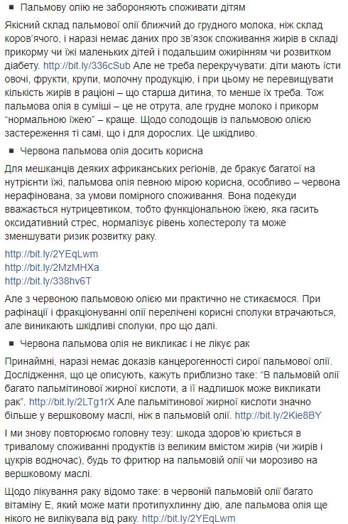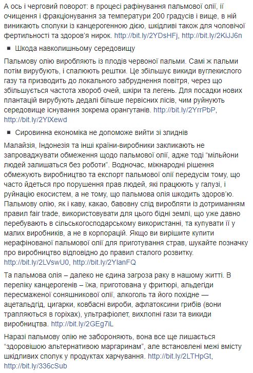 "К сожалению, в основном мы сталкиваемся уже с рафинированными и разделенными фракциями пальмового масла или даже маргаринами на основе пальмового олеина", - пишет чиновница.