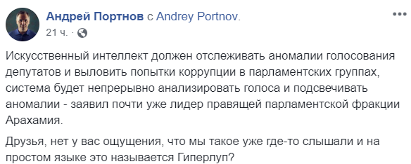 Юристу Андрею Портнову высказывания Арахамии напомнили мечты министра Владимира Омеляна о гиперлупе.