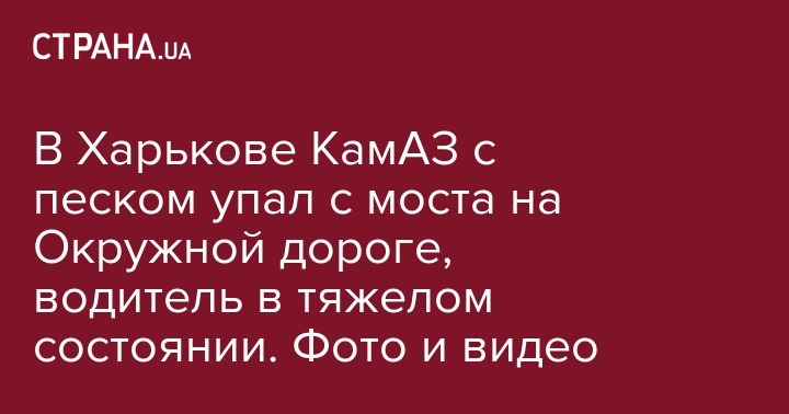 КамАЗ с песком ехал по Окружной дороге, около 10:00 он упал с моста. Водитель автомобиля в тяжелом состоянии был доставлен в Харьковскую городскую клиническую больницу скорой и неотложной помощи. Медики констатировали у него тяжелые травмы и готовят его к операции.
