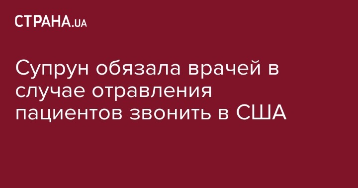 В случае отравления пациентов исполняющая обязанности министра здравоохранения Ульяна Супрун обязала медиков звонить по номеру телефона (800) 222-122, который зарегистрирован в Соединенных Штатах. Об этом сообщил на своей странице в Facebook журналист Евгений Куксин.