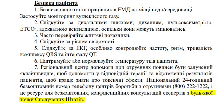 "Ресурс для бесплатных и конфиденциальных консультаций экспертов. Звонить бесплатно можно из любой точки Соединенных Штатов. При чем здесь США к Украине? Понятия не имею. Но именно этот телефон указан в "Протоколе оказания экстренной медицинской помощи на догоспитальном этапе" утвержденном приказом МИНЗДРАВА в начале июня", - говорится в сообщении.