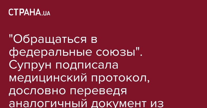 "Обращаться в федеральные союзы". Супрун подписала медицинский протокол, дословно переведя аналогичный документ из США
