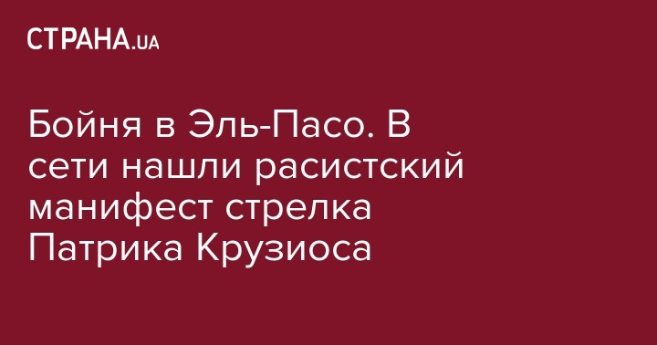 Федеральные власти США и полиция расследуют стрельбу в супермаркете Walmart в Эль-Пасо (штат Техас - Прим.Ред.), в результате которой погибли 22 человека, как внутренний терроризм. Детективам уже удалось обнаружить в сети расистский манифест стрелка 21-летнего Патрика Крузиоса, в котором тот оправдывал кровавую бойню необходимостью борьбы с мигрантами.