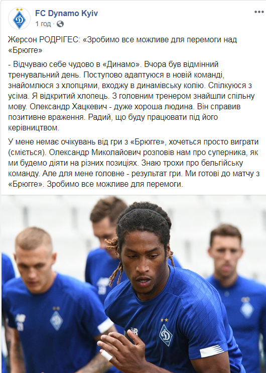 Новобранец "бело-синих", форвард сборной Люксембурга, Жерсон Родригес перед игрой рассказал об адаптации в киевском Динамо и о ходе подготовки к игре с Брюгге, как передает официальный Facebook нашей команды.