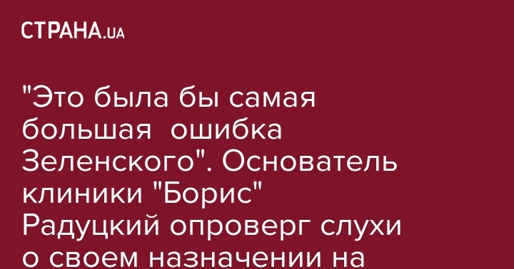 "Это была бы самая большая ошибка Зеленского". Основатель клиники "Борис" Радуцкий опроверг слухи о своем назначении на пост главы Минздрава