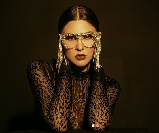 Снимки появились на странице певицы в Instagram.  Maruv позирует в прозрачном топе с ажурным леопардовым принтом, через который просвечивается ее грудь. Лицо певицы прикрывает маска.