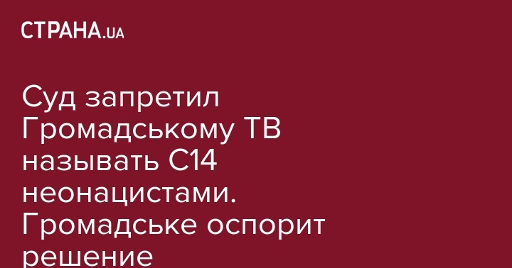 Хозяйственный суд Киева удовлетворил иск праворадикальной организации С14 против Громадського ТВ из-за публикации, в которой С14 была названа как "неонацистская" организация. Решение по делу вынесла судья Юлия Картавцева. Она отметила, что информация, распространенная каналом "вредит репутации" С14 и также обязала Громадське ТВ опровергнуть ее, опубликовав решение суда. Кроме этого журналисты должны выплатить в пользу С14 3 500 гривен судебного сбора.