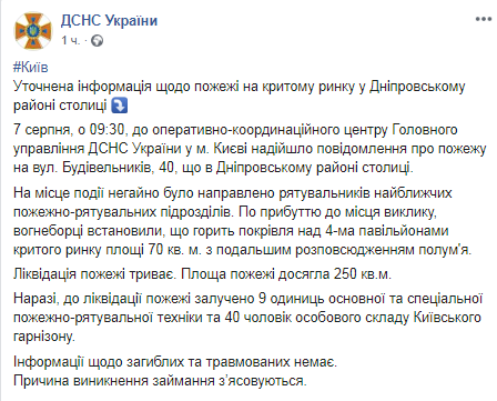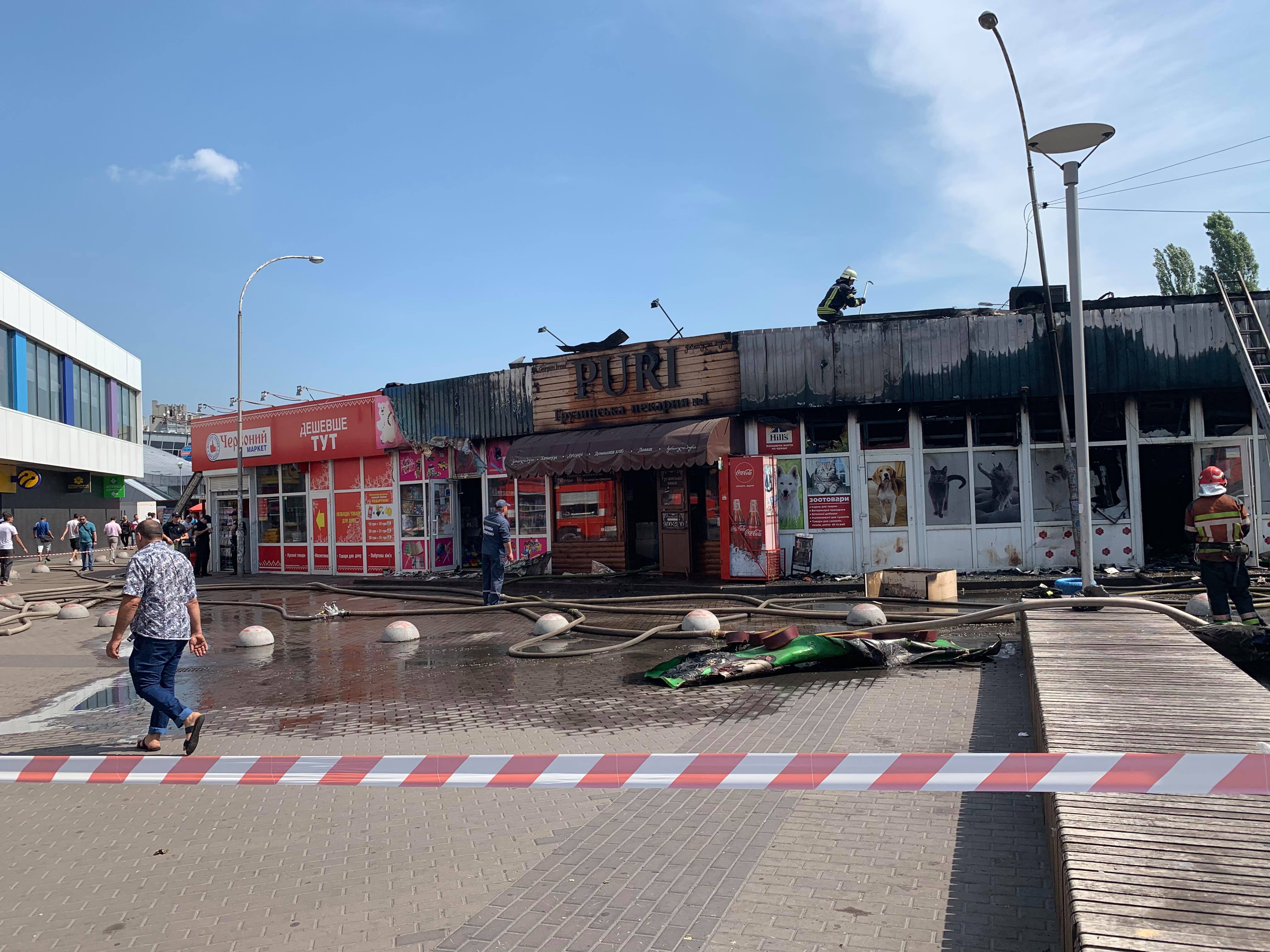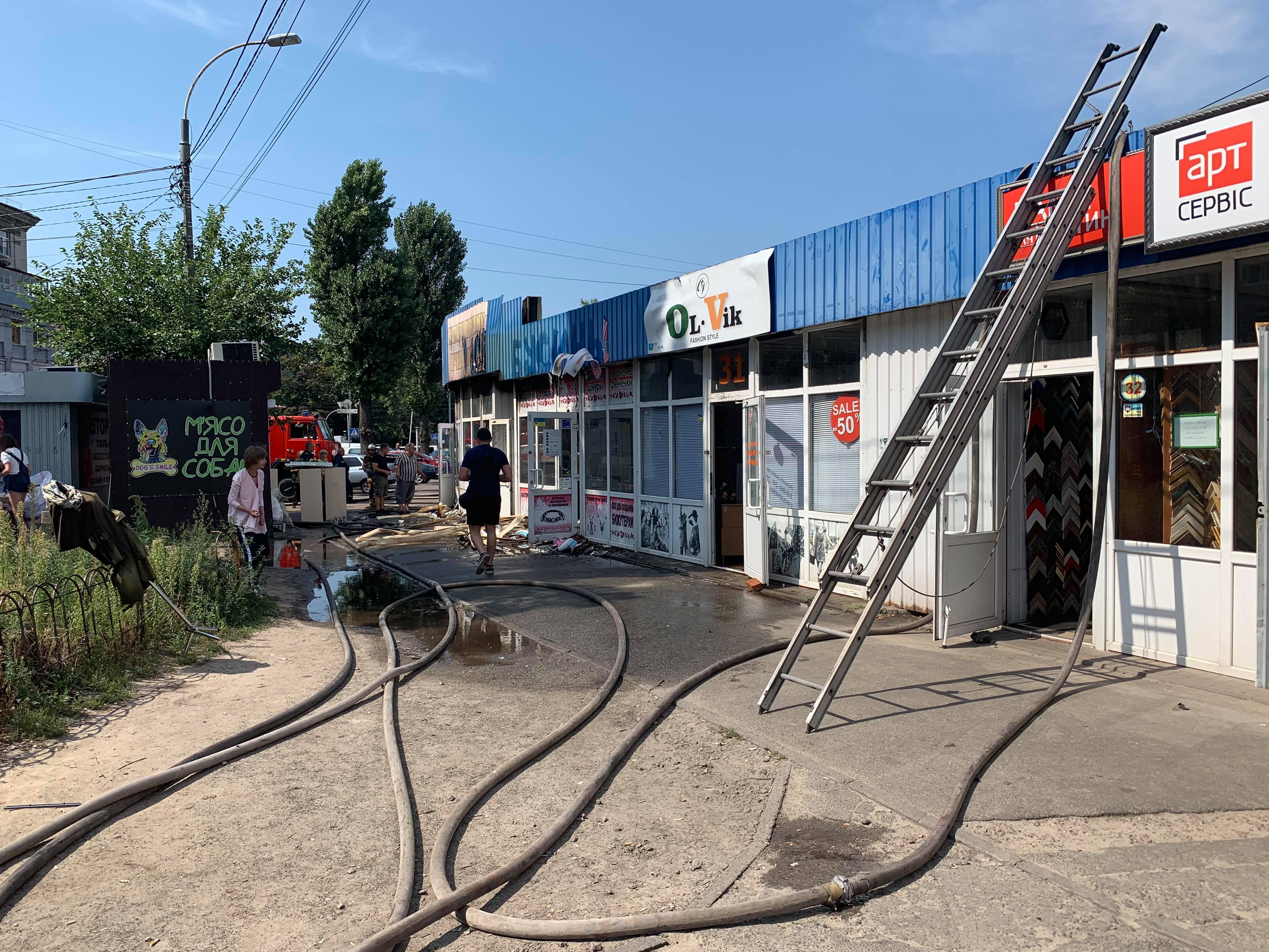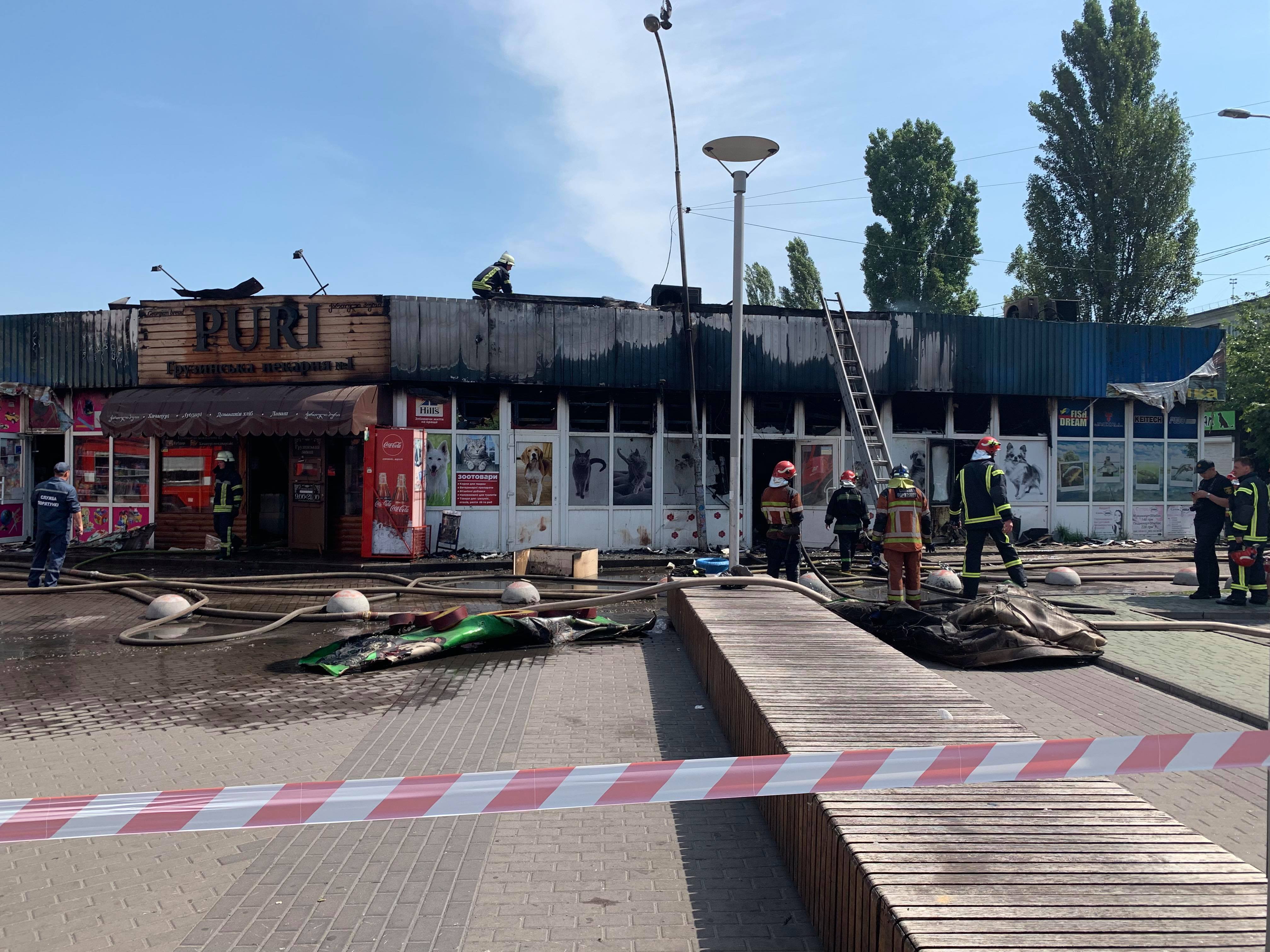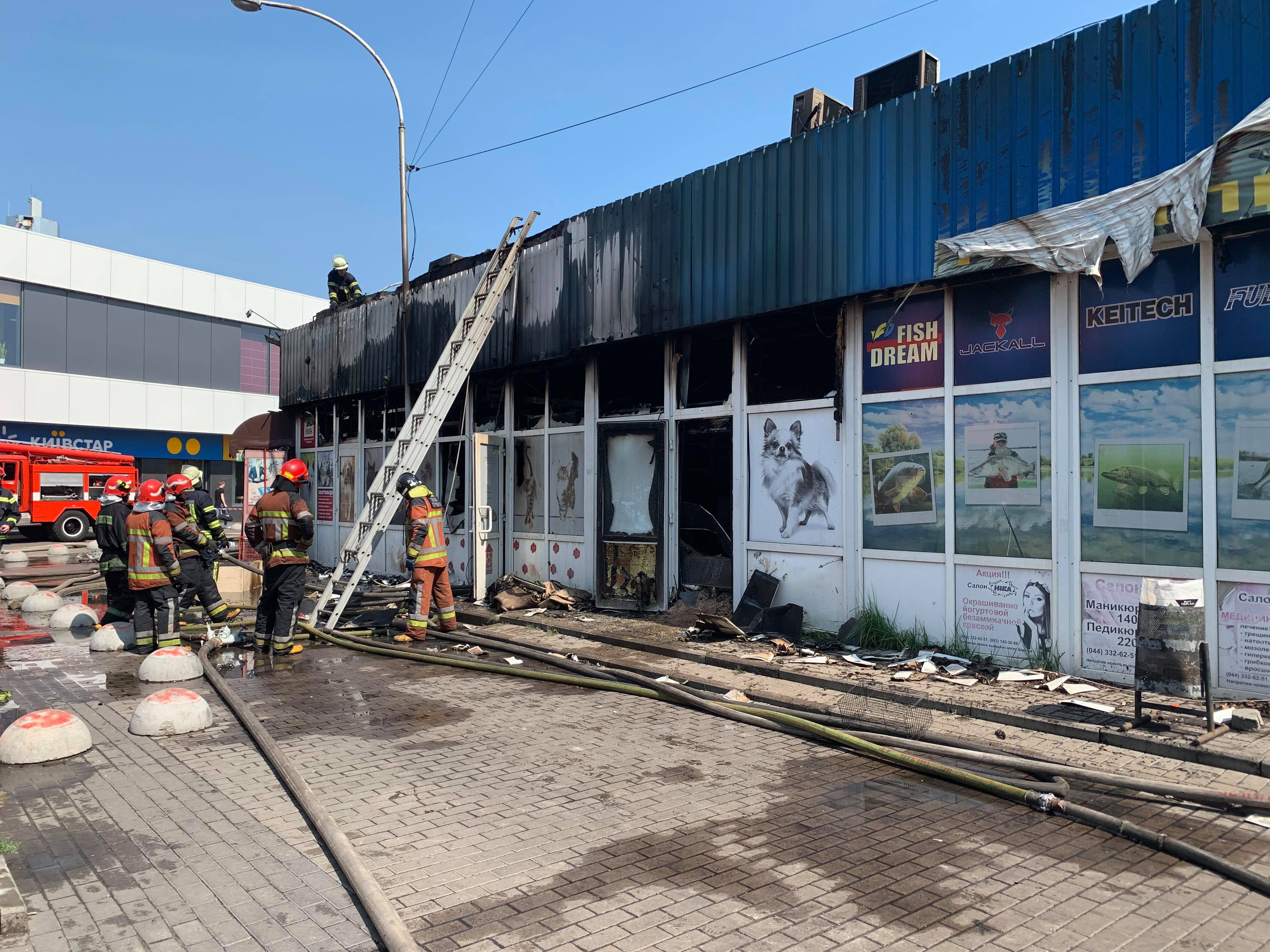 В результате пожара, который утром 7 августа произошел в Киеве на крытом рынке у станции метро "Дарница", полностью сгорел зоомагазин, частично повреждены киоски рядом с ним. Об этом сообщает корреспондент "Страны" с места событий.