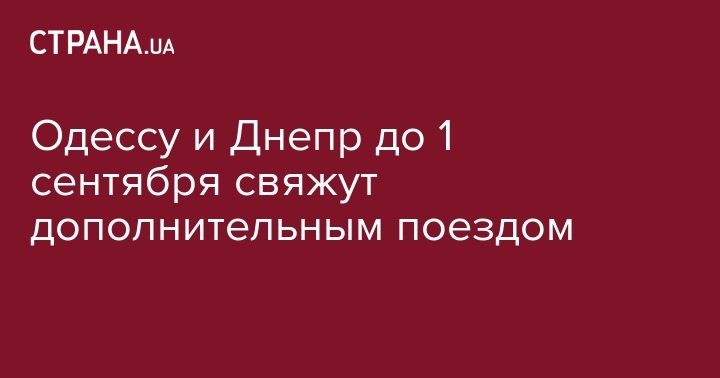 Уточняется, что из Одессы поезд будет курсировать в период с 9 по 31 августа через день по нечетным числам в 21:35 (прибытие в Днепр - 6:50). Из Днепра поезд будет возить пассажиров, начиная с 10 августа и по 1 сентября. Рейс будет осуществляться через день по четным числам. Отправление - 22:30 (прибытие в Одессу - 08:00).