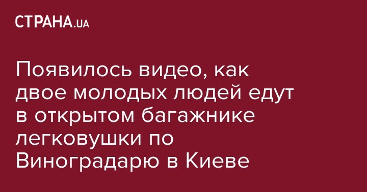 Появилось видео, как двое молодых людей едут в открытом багажнике легковушки по Виноградарю в Киеве