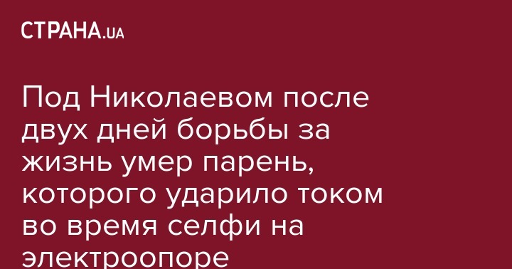 Под Николаевом после двух дней борьбы за жизнь умер парень, которого ударило током во время селфи на электроопоре