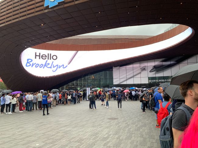 22:24 У Барклай-центра уже толпы журналистов. Все под зонтами. В Бруклине начался ливень. Интересно - новый Note 10 водонепроницаем?