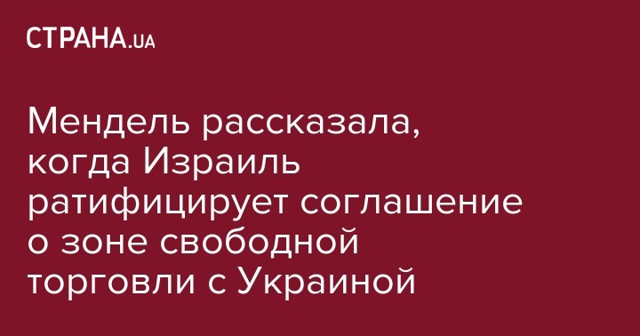 "Вчера президент Владимир Зеленский подписал закон о ратификации соглашения о свободной торговле с Израилем. Рада приняла закон в прошлом месяце. После парламентских выборов в Израиле 17 сентября ожидается, что новый Кнессет ратифицирует закон", - написала Мендель.