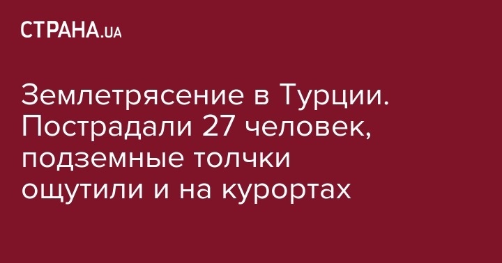 Землетрясение в Турции. Пострадали 27 человек, подземные толчки ощутили и на курортах