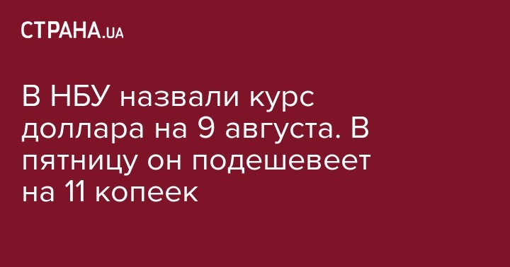 В НБУ назвали курс доллара на 9 августа. В пятницу он подешевеет на 11 копеек