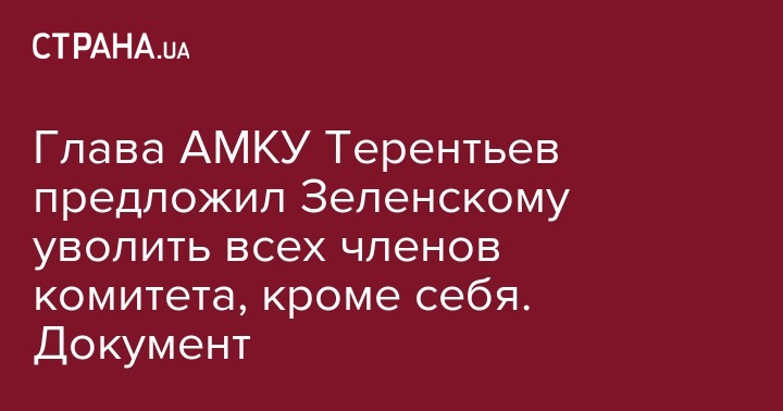 Глава Антимонопольного комитета Юрий Терентьев 4 июля направил президенту Владимиру Зеленскому документ под названием "О рассмотрении вопроса об увольнении государственных уполномоченных", который включал в себя фамилии всех членов Комитета кроме самого председателя. Наши деньги опубликовали копию документа.