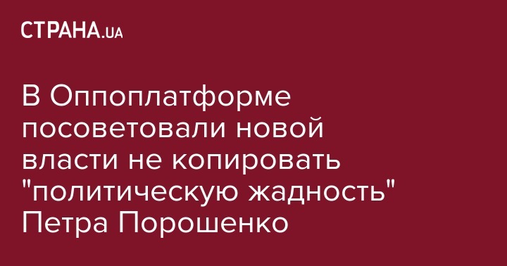 В Оппоплатформе посоветовали новой власти не копировать "политическую жадность" Петра Порошенко