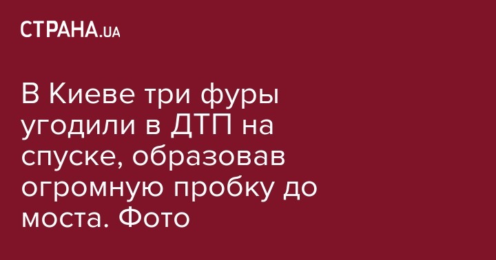 В Киеве три фуры угодили в ДТП на спуске, образовав огромную пробку до моста. Фото