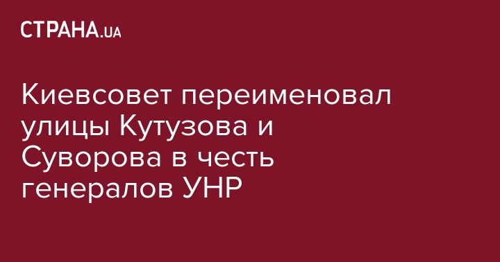 В четверг, 7 июля, Киевсовет проголосовал за переименование улиц, названных в честь легендарных российских полководцев Михаила Кутузова и Александра Суворова. Об этом решении сообщают "Украинские Новости".
