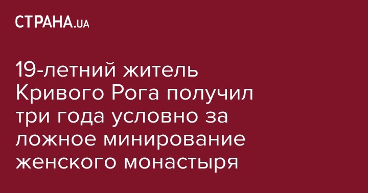 19-летний житель Кривого Рога получил три года условно за ложное минирование женского монастыря
