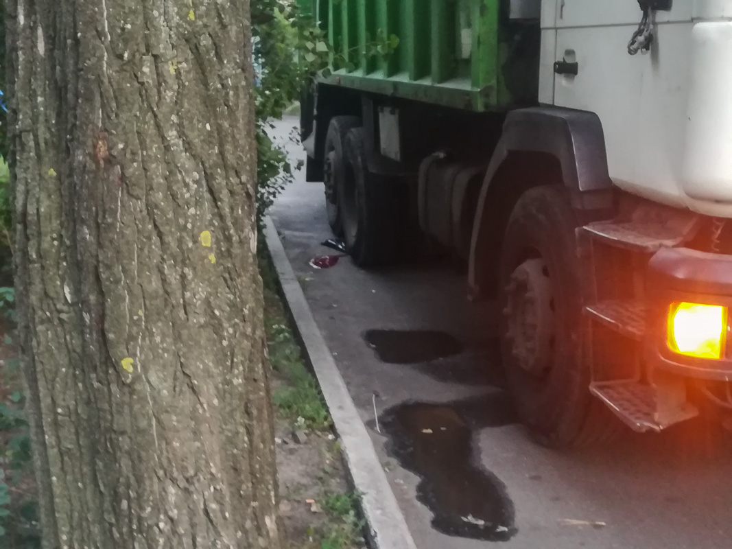 На бульваре Верховной Рады в Киеве мусоровоз раздавил мужчину, который сидел на корточках. Фото
