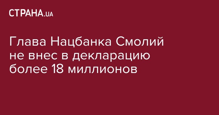 Глава Национального банка Украины Яков Смолий внес в декларации 2015, 2016 и 2017 годов недостоверные данные и таким образом не задекларировал более 18,3 миллиона гривен. Об этом сообщается на сайте НАПК.