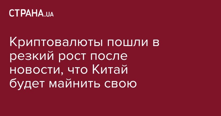 Криптовалюты пошли в резкий рост после новости, что Китай будет майнить свою