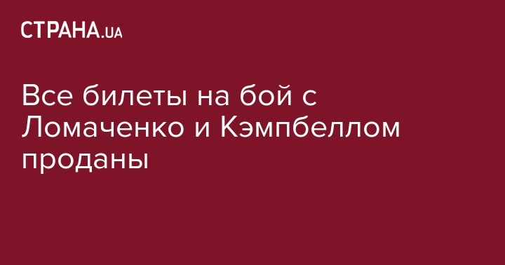 Все билеты на бой, который состоится 31 августа в Лондоне на арене О2 между британским боксером Люком Кэмпбеллом и Василием Ломаченко уже проданы. Об этом сообщил промоутер британского боксера Эдди Хирн в своем Twitter.