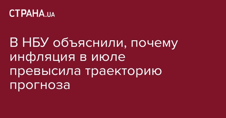 Как говорится в комментарии НБУ, отклонение обусловлено более высокими темпами роста цен на отдельные сырые продукты питания, в то время как базовая инфляция соответствует прогнозам.