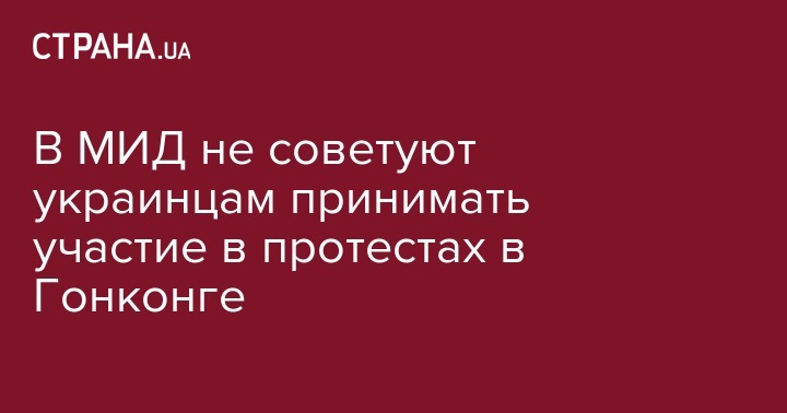 "В связи с обострением ситуации безопасности в Специальном административном районе Сянган (Гонконг), КНР, при массовых акциях протеста, которые привело к отмене рейсов в Международном аэропорту, Министерство иностранных дел Украины рекомендует гражданам Украины ... ограничить передвижения по территории Гонконга, избегать мест массового скопления людей, не принимать участия в собраниях, демонстрациях ", - говорится в сообщении.