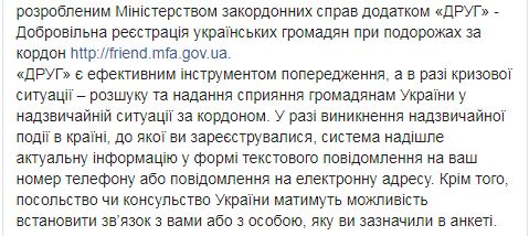 Дипломаты рекомендуют проверять статус авиарейсов на сайте Международного аэропорта Гонконга, а в случае попадания в чрезвычайную ситуацию, возникновения угрозы жизни и здоровью или обстоятельств, требующих немедленного консульского реагирования, - безотлагательно обращаться в Посольство Украины в Китайской Народной Республике по телефону "горячей линии": + 86-137-0123-0647, консульский отдел: + 86-10- 65326783, обращаться на круглосуточную "горячую линию" МИД Украины: +38 044 238 16 57, электронная почта: cons_or@mfa.gov.ua.
