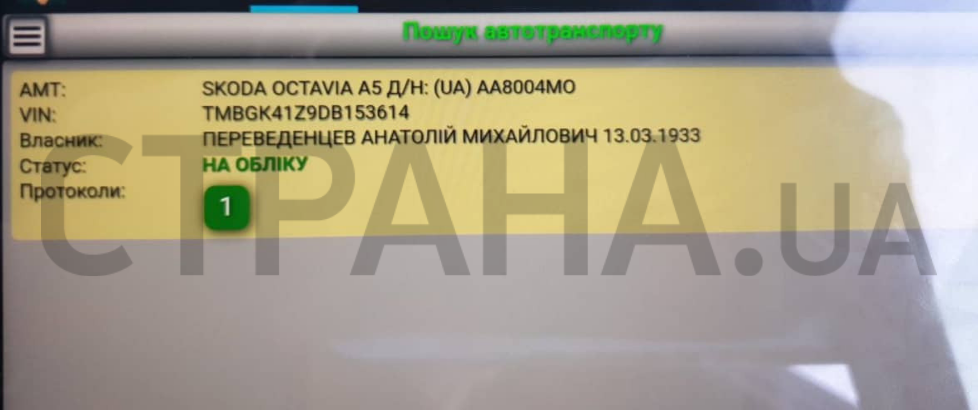 Как выяснила "Страна" у своих источников в полиции, этот автомобиль зарегистрирован на отца Марины Порошенко - 86-летнего Анатолия Переведенцева, который был замминистра здравоохранения УССР.