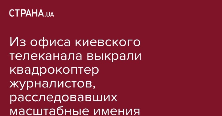 Заявление в полицию подала представительница одного из телеканалов, специализирующихся на журналистских расследованиях о коррупции во власти. По словам заявительницы, из офиса канала на бульваре Леси Украинки выкрали дорогой квадрокоптер, который журналисты активно использовали в своих расследованиях для съемок имений крупных госчиновников. А до этого журналистам не раз угрожали фигуранты расследований.