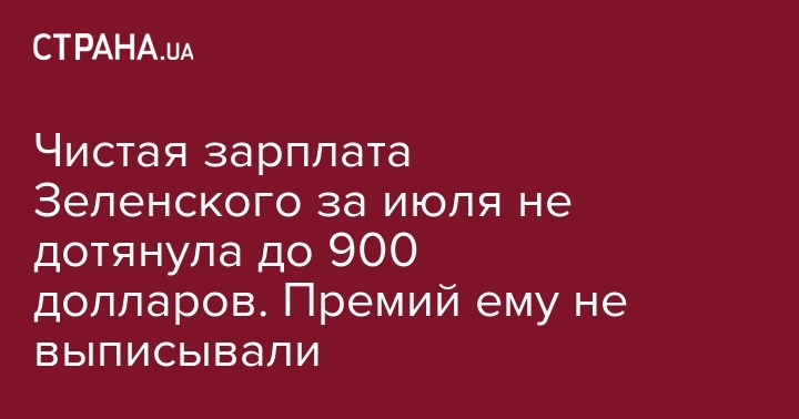 "Заработная плата президенту Украины Зеленскому в июле 2019 года начислена в размере должностного оклада – 28 тысяч гривен. Других составляющих заработной платы (надбавок, премий и тому подобное) президенту Украины не установлено", - сообщил Сергей Борзов.