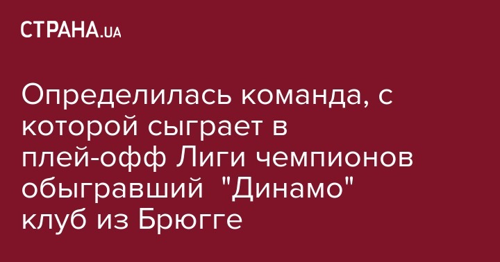 Определилась команда, с которой сыграет в плей-офф Лиги чемпионов обыгравший "Динамо" клуб из Брюгге