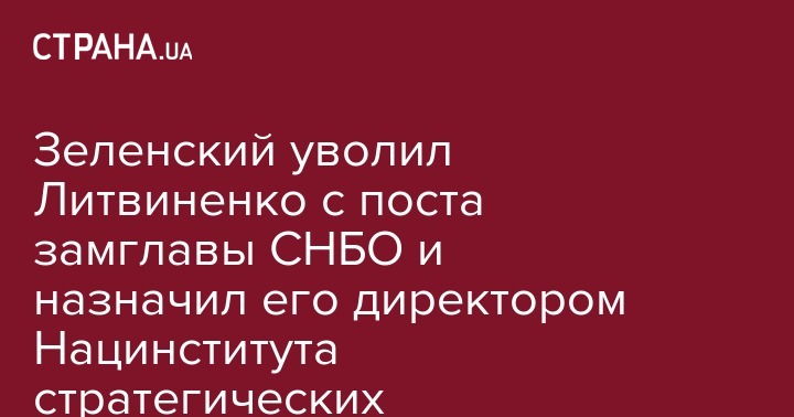 Зеленский уволил Литвиненко с поста замглавы СНБО и назначил его директором Нацинститута стратегических исследований