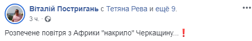"Раскаленным воздухом из Африки накрыло Черкащину", - отмечает в опубликованном сообщении.