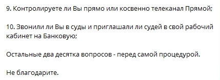 10. Звонили ли Вы в суды и приглашали ли судей в свой рабочий кабинет на Банковую;