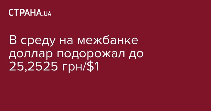 В среду на межбанке доллар подорожал до 25,2525 грн/$1