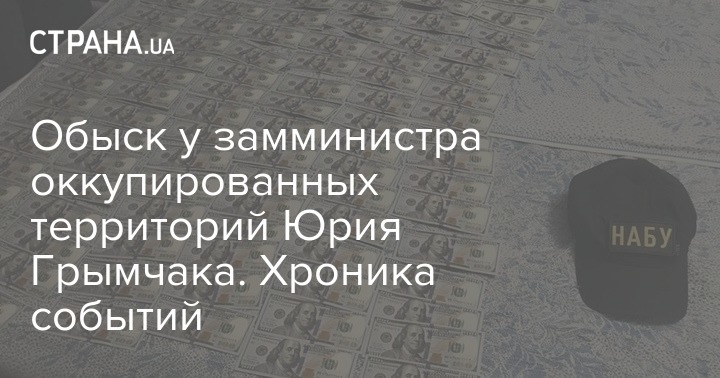 НАБУ и СБУ задержали заместителя министра по вопросам временно оккупированных территорий Украины Юрия Грымчака и его помощника на взятке размером 480 тысяч долларов.