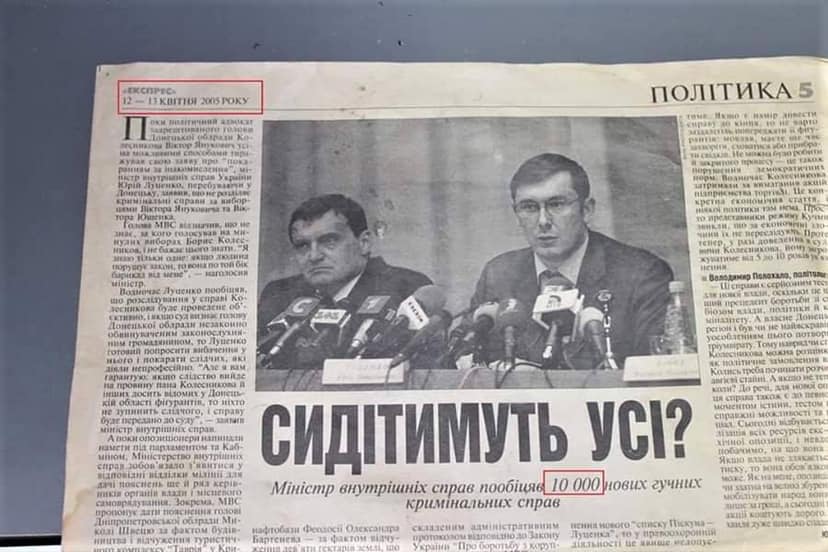 "Грымчак и Луценко. Долго по жизни шли рука в руку", пишет у себя в Facebook заместитель главного редактора Светлана Крюкова, публикуя совместное фото обоих, вышедшее в газете за апрель 2005 года.