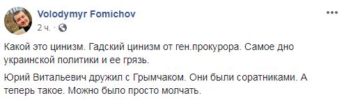 "Один из самых поразительных моментов - генеральный прокурор Юрий Луценко, у которого Грымчак работал помощником в свое время, оказывается, санкционировал арест. И сам сразу после задержания заявил в фейсбуке, что основания для задержания и предъявления подозрения есть: "Стыдно за моего бывшего помощника!" - заявил генпрокурор, так что никаких заявлений в заказном политическом характере дела не будет. Молниеносная скорость - которая говорит о какой-то убедительной доказательной базе. Генеральная прокуратура, которая приняла участие в задержании, к слову, информацию не "слила", - пишет журналист Юрий Бутусов.