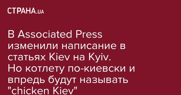 В Associated Press изменили написание в статьях Kiev на Kyiv. Но котлету по-киевски и впредь будут называть "chicken Kiev"