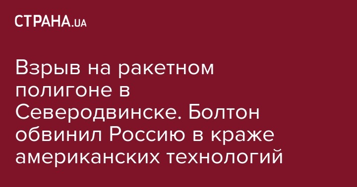 Взрыв на ракетном полигоне в Северодвинске. Болтон обвинил Россию в краже американских технологий