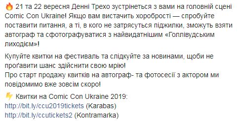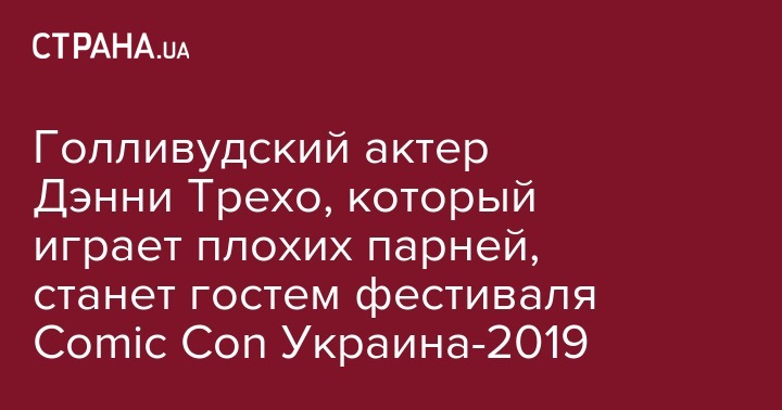 Знаменитый актер боевиков Дэнни Трехо, который запоминается своим харизматичным внешним видом, станет специальным гостем Comic Con Украина-2019. Об этом организаторы фестиваля сообщили в Facebook.