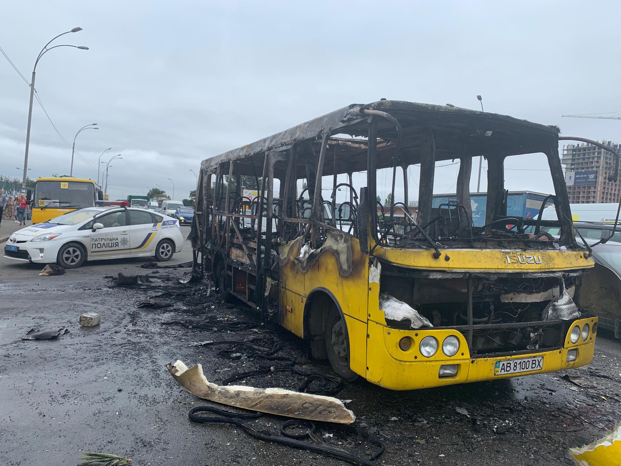 В результате происшествия полностью сгорел автобус №332 "Киев - Бровары". Это произошло около 09:00. По словам водителя маршрутки, когда все пассажиры вышли на конечной остановке, произошёл резкий хлопок, взрыв и маршрутка стремительно звспыхнула.