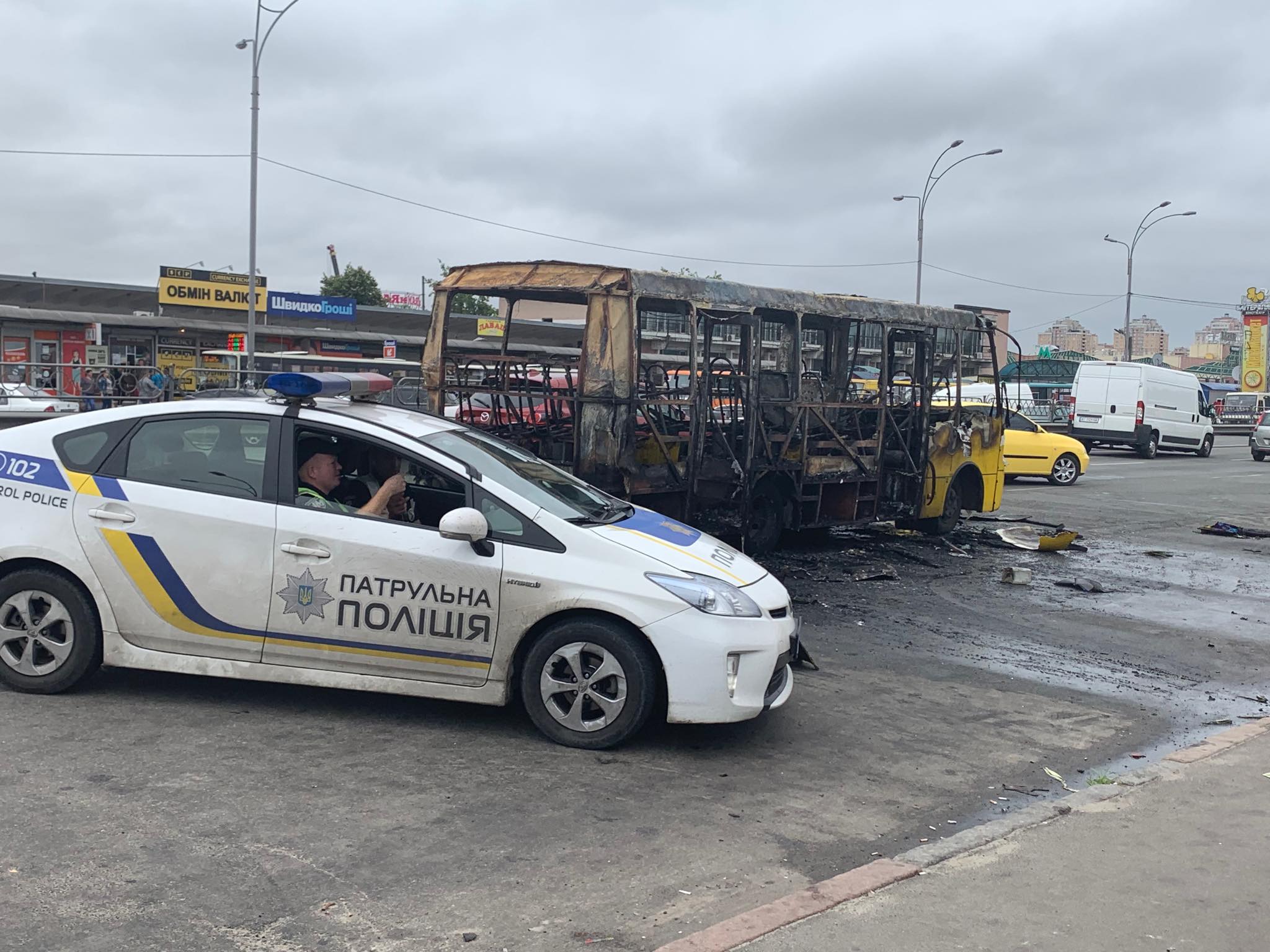 В столице у станции метро "Лесная" взорвалась и сгорела маршрутка Киев - Бровары. Фото